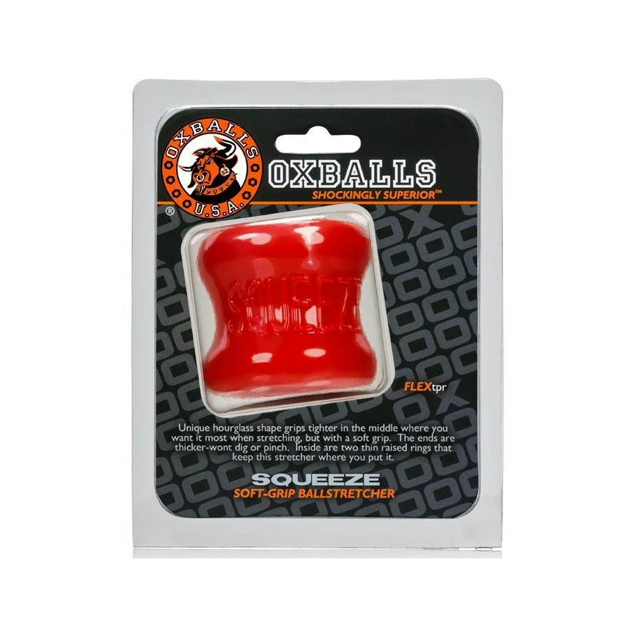 Le ballstretcher SQUEEZE de la marque Oxballs présenté sur le sex shop gay est un anneau qui se place au dessus des bourses pour les rendre plus rebondies et étirées.