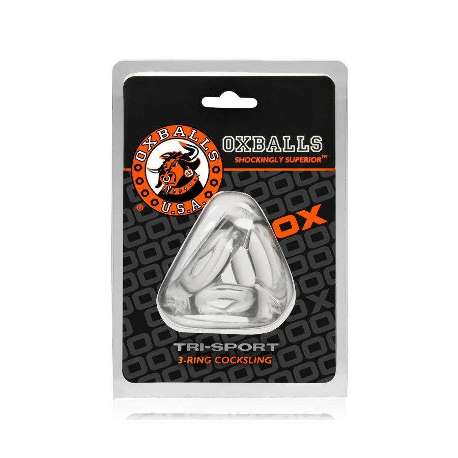 Le ballstretcher TRI-SPORT Cockring transparent de la marque OXBALLS est un accessoire pour les bourses et le pénis.
